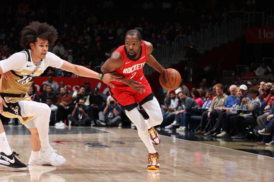三场合砍102分,37岁杜兰特创火箭队史最老!扛着火箭前进超上个赛季同期表现,也终于熬到乌度卡被迫开窍。